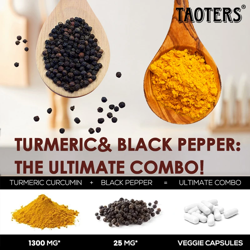 The synergistic effect of Turmeric and Black Pepper supplements supports flexibility and supports overall health.