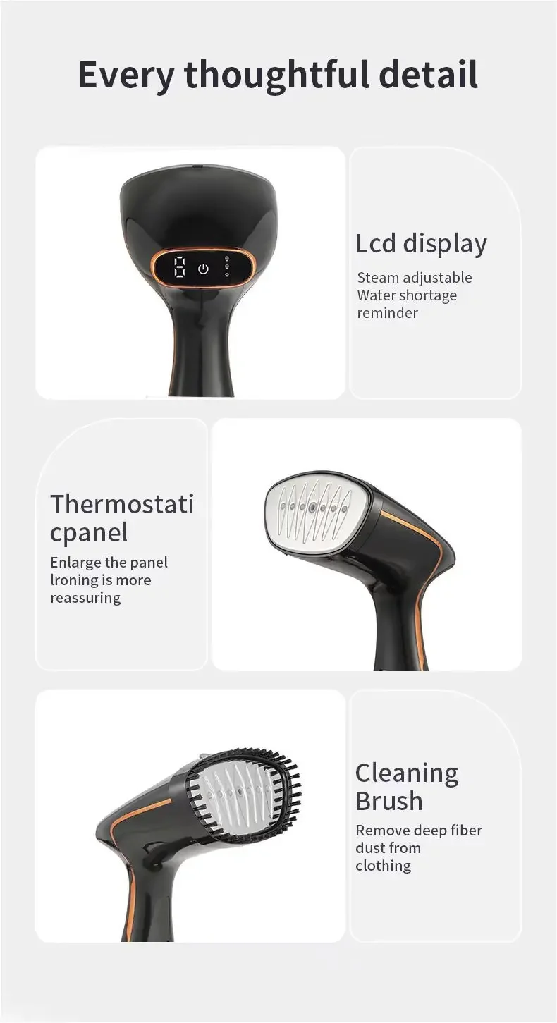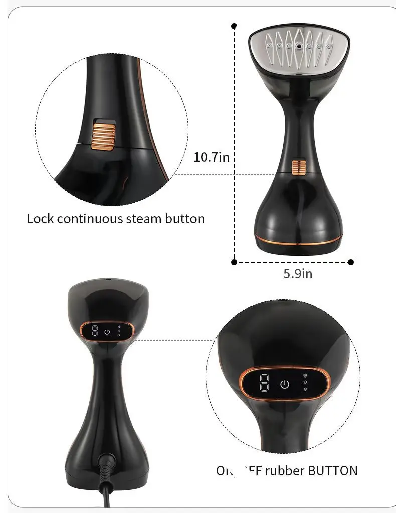Other function description:①Large ironing panel and large steam volume, ②Large water volume, ③Classic and stylish appearance, ④Digital display control panel