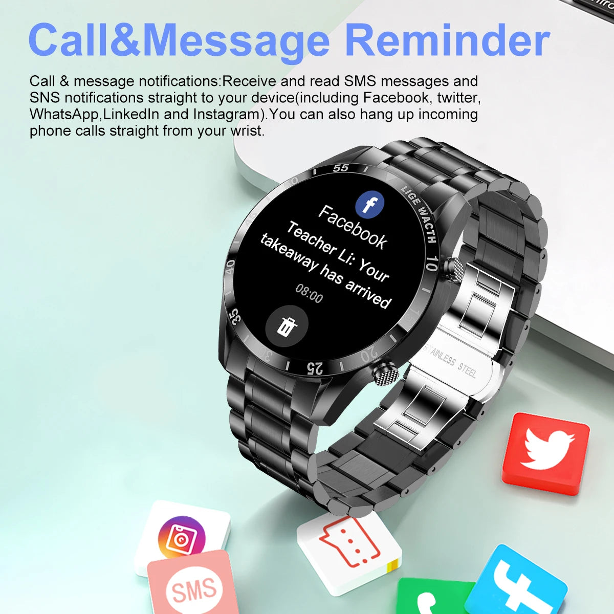 LIGE Luxury Full Circle Touch Screen Men Smart Watch Bluetooth Call Steel Band Waterproof Sports Fitness Watch For Android IOS