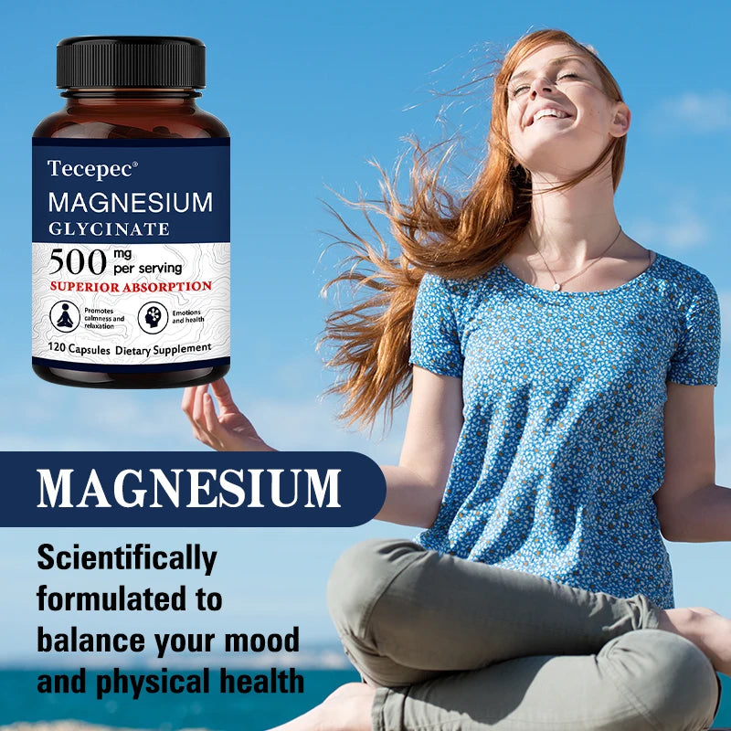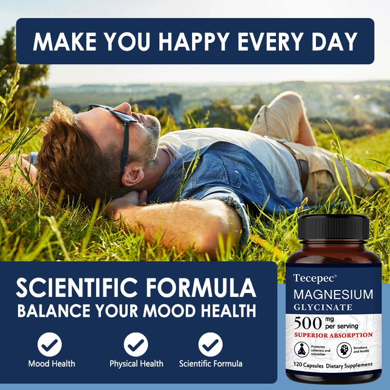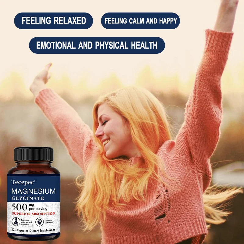 Magnesium Glycinate 500 Mg, 100% Chelated and Purified, for Calm and Relaxation, Emotional Well-being, Non-GMO and Gluten-free