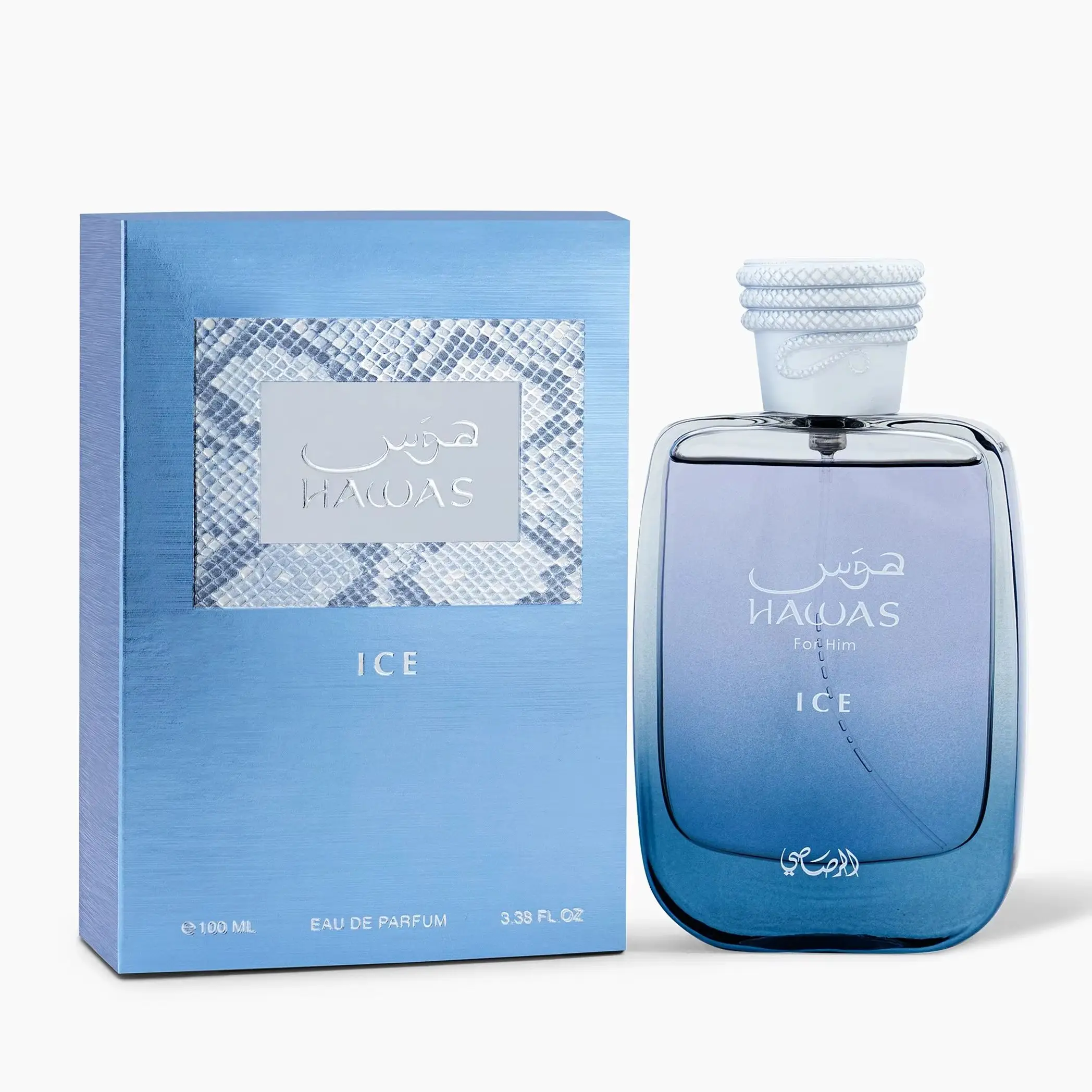 Experience a refreshing and masculine scent with the Rasasi Hawas Ice Cologne, featuring vibrant citrus, aquatic, and woody notes.